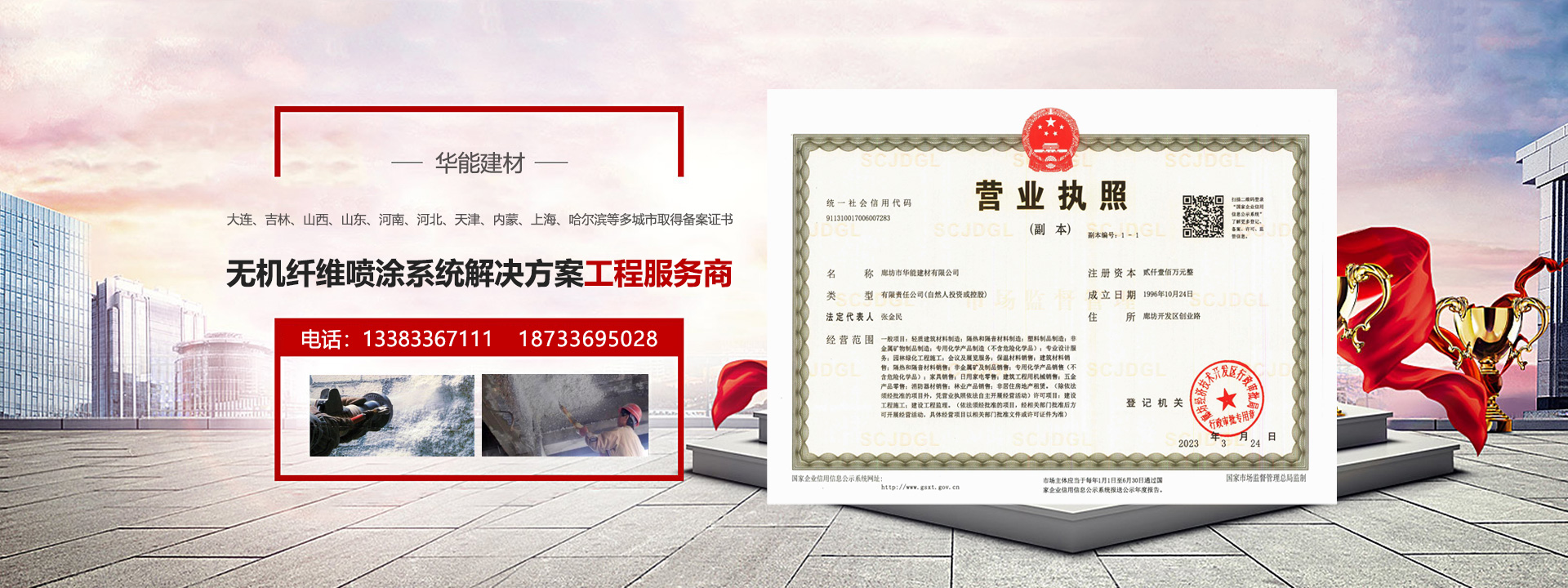 廊坊市華能建材有限公司承接廊坊華夏第九園無機(jī)纖維噴涂項(xiàng)目